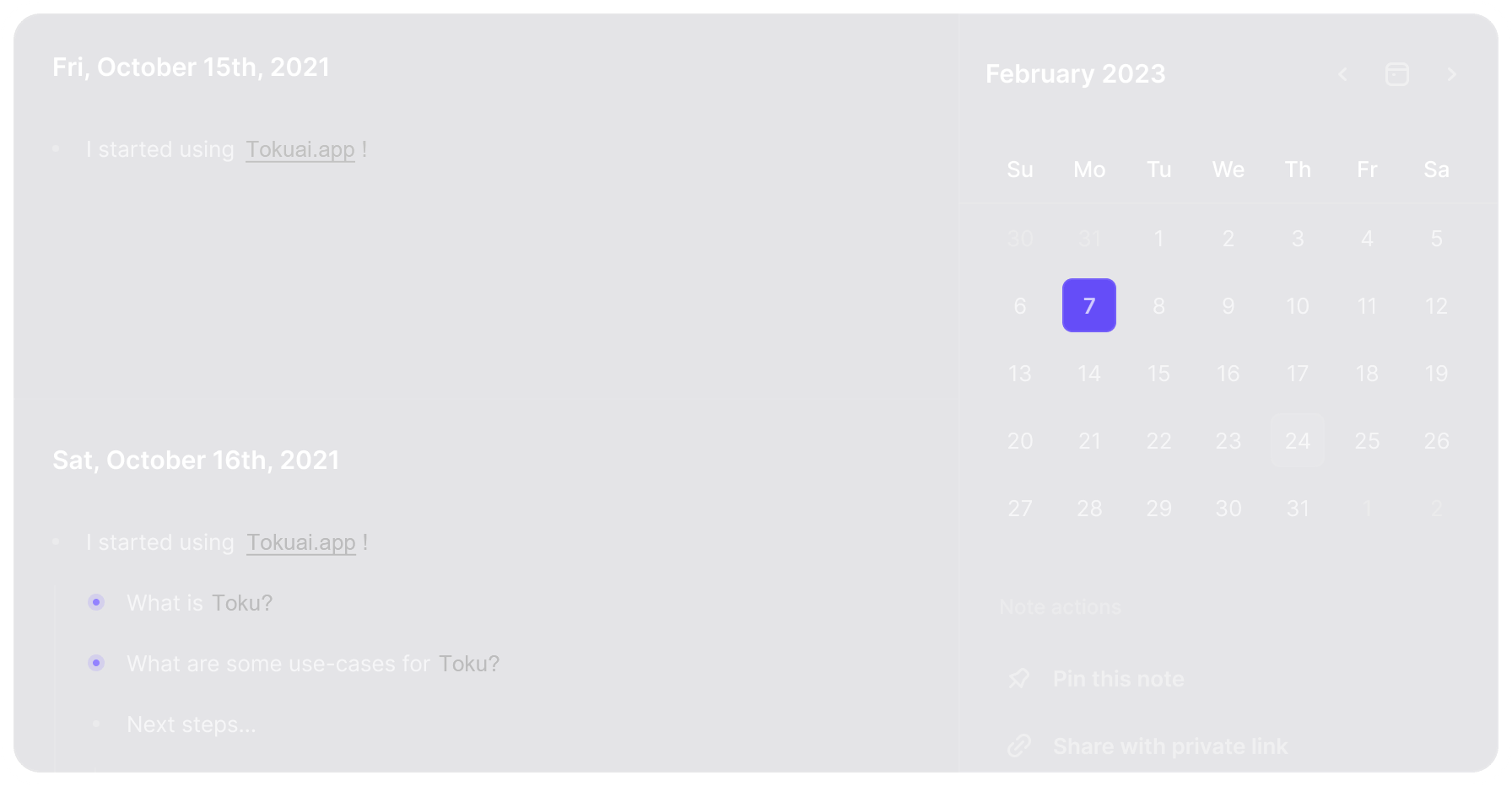 Mirror the way your mind works by associating notes through backlinks. Toku builds you a second brain that you can reference anytime.